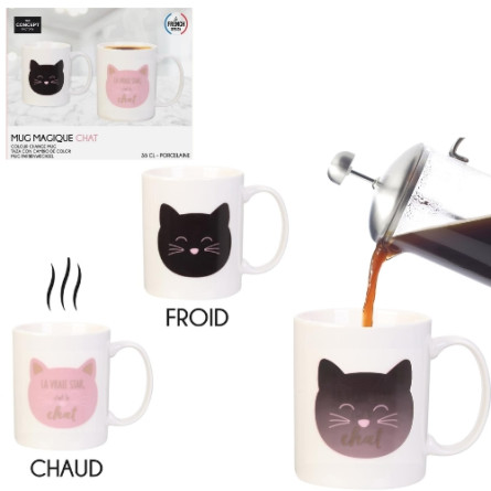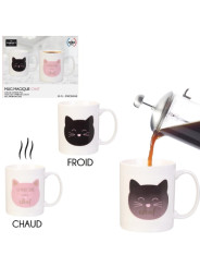 Apportez une touche de surprise et de gourmandise à chaque boisson avec ce mug thermique en forme de chat. Lorsqu’il est rempli d’une boisson chaude, le mug change de couleur et révèle un message secret, offrant un moment amusant et original à chaque gorgée.