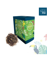 Thé vert aux notes fruitées et délicates de mirabelle, infusion douce et aromatique. Saveur gourmande de fruits jaunes, idéale pour une pause parfumée, naturelle et subtile, avec pétales de souci bio.