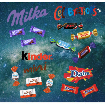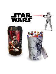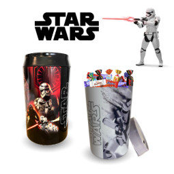Tirelire en métal Star Wars 18 cm garnie de 20 chocolats multi-variétés : Mars, Snickers, Twix, Bounty, Kinder Schokobons, Kinder Mini-Bueno, Daim, Milka nature..
