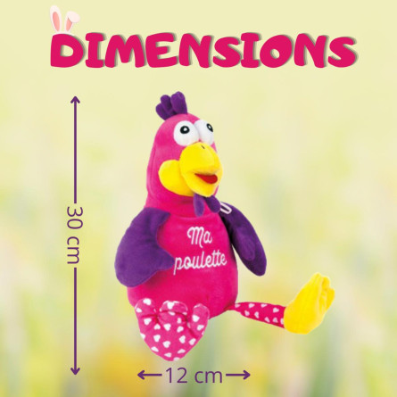Craquez pour la peluche “Ma poulette” de 30 cm, toute douce et câline ! Parfaite pour offrir à un anniversaire ou simplement pour faire plaisir, elle réserve une délicieuse surprise gourmande.