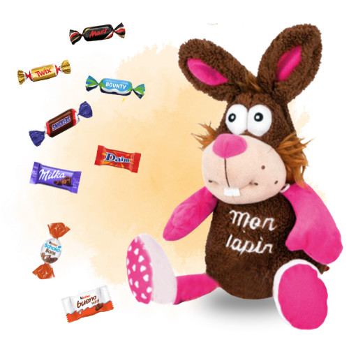 Craquez pour la peluche “Mon lapin” de 30 cm, toute douce et câline ! Parfaite pour offrir à un anniversaire ou simplement pour faire plaisir, elle réserve une délicieuse surprise gourmande.