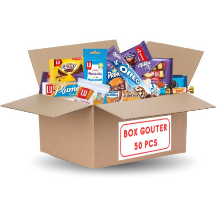 Exclusivement disponible sur Coffee Choc, cet assortiment de biscuits et chocolats a été conçu pour satisfaire toutes vos envies sucrées. Il est l'allié idéal pour combler les petits creux et s'offrir des gourmandises tout au long de la journée. Que ce soit pour les enfants ou pour les adultes, cette sélection gourmande saura ravir les papilles de tous les âges. Cet assortiment est garni de Madeleine et Galette St Michel, Véritable petit beurre LU, Petit prince, Petit écolier, Gaufrette à la vanille, biscuit au chocolat Grany, Milka cookie, Milka Lu pocket, Milka brownie, Milka Oréo, Oréo Pocket, chocolats Milka nature, Kinder Schokobons, Mini Bueno, Daim, Mini Mars, Mini Twix, Mini Snickers et Mini Bounty.