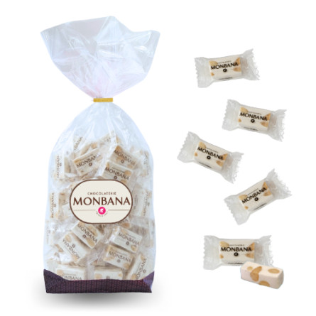 Le délicieux nougat de la chocolaterie MONBANA est une friandise douce de qualité supérieure. Réalisé à base d'amande, de miel, de sucre et de blancs d'œufs, le nougat est considéré comme une gourmandise de luxe puisque les ingrédients qui le composent sont souvent coûteux. Avec sa texture ferme et légèrement collante, le nougat MONBANA est une confiserie très appréciée pour ajouter une petite touche sucrée à vos desserts.