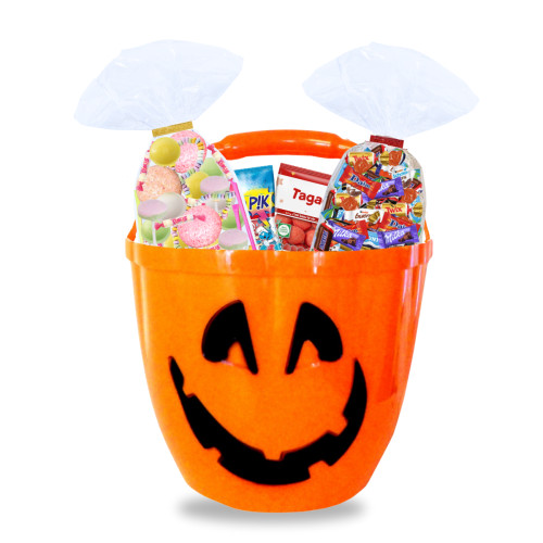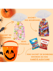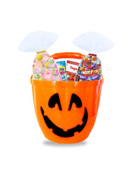 Succombez à la magie d’Halloween avec ce seau citrouille garni de 60 délicieux bonbons et chocolats, prêt à régaler les petits monstres !