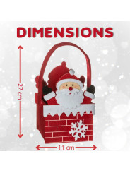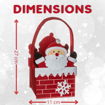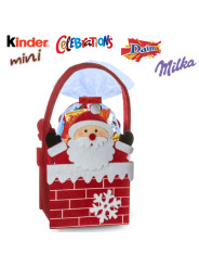 Craquez pour ce grand panier en feutrine Père Noël 27x11 cm garni d’un sachet de 60 chocolats assortis : Kinder Schokobons, Mini-bueno, Daim, Milka nature, Mini Mars, Mini Twix, Mini Snickers.. – le cadeau idéal à offrir ou à glisser sous le sapin !