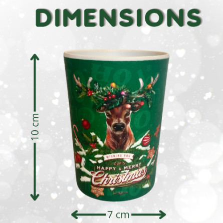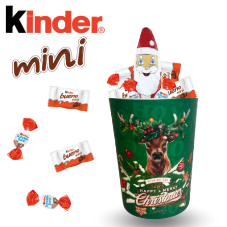 Verre mélaminé rempli de 20 délicieux Kinder Schokobons, mini Bueno + 1 moulage Père Noël 30gr pour un moment gourmand.