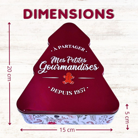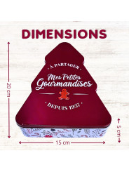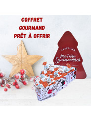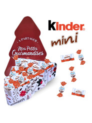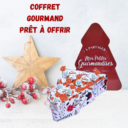 Cette petite boite métal en forme de sapin est garnie de 35 chocolats Kinder (mini bueno et schokobons).