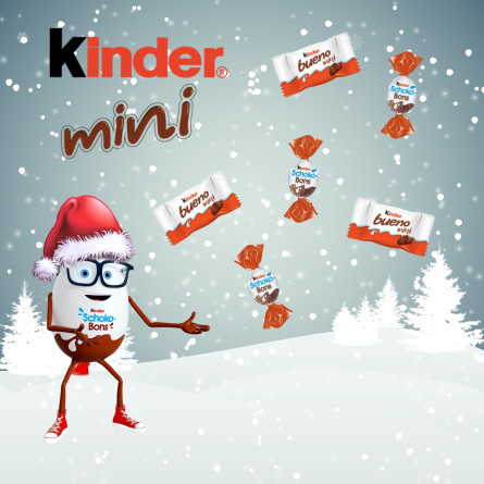 Mini bueno : chocolat au LAIT 31 % (sucre, beurre de cacao, pâte de cacao, LAIT écrémé en poudre, BEURRE concentré, émulsifiants: lécithines [SOJA], vanilline), sucre, huile de palme, farine de froment, NOISETTES  10,8%, lait écrémé en poudre, LAIT en poudre, chocolat noir (sucre, pâte de cacao, BEURRE de cacao, Emulsifiants: lécithines [SOJA], poudres à lever (carbonate acide de sodium, carbonate acide d'ammonium), sel, vanilline.