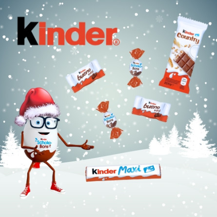 Cette adorable boîte en forme de Père Noël, garnie de délicieux 45 chocolats Kinder Schokobons, mini Bueno, barre Country, barre Maxi est l'idée cadeau parfaite pour les petits gourmands.