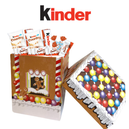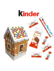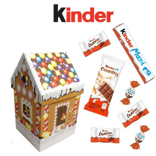 À Noël, surprenez vos petits invités avec cette maisonnette garnie de 45 chocolats KINDER (schokobons, mini bueno, barre country, barre maxi), un cadeau gourmand qui ravira les enfants !