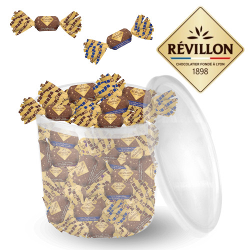 Tubo en plastique transparent garni d'un assortiment de 100 pralinés : céréales croustillantes, chocolat double praliné noisette. Idéal pour partager en famille ou entre amis.