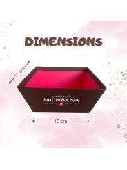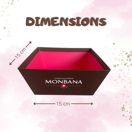 Cette corbeille raffinée comprend 3 dosettes de chocolat en poudre Monbana — Trésor 25 g, Salon de Thé 20 g et Lacté 4 × 30 g — pour savourer à tout moment de délicieux chocolats chauds.