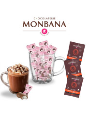 Pack gourmand chocolaté : savourez un instant de pur plaisir avec ce pack délicatement conçu. Il comprend une tasse en verre de 30 cl, idéale pour déguster votre boisson chaude, accompagnée de 3 dosettes de chocolat en poudre Tradition Monbana, riche et onctueux, pour un chocolat chaud parfaitement crémeux.