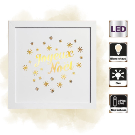Cadre lumineux "Joyeux Noël" idéal pour décorer vos pièces intérieures lors des fêtes de fin d'année - Piles non incluses.