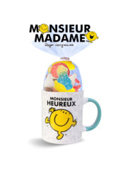 Faites plaisir avec ce mug Monsieur Heureux garni de 25 bonbons acidulés gélifiés.