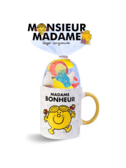 Faites plaisir avec ce mug Madame Bonheur garni de 25 bonbons acidulés gélifiés.