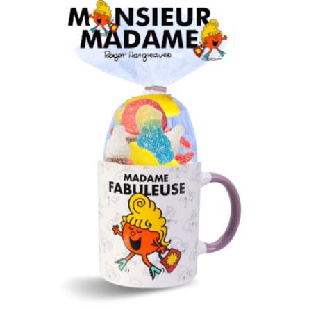 Faites plaisir avec ce mug Madame Fabuleuse garni de 25 bonbons acidulés gélifiés.