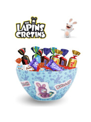 Le bol est accompagné de 30 délicieux chocolats, soigneusement sélectionnés pour tous les goûts : Kinder Bueno, Schokobons, Milka, Daim, Twix, Snickers, Bounty et Mars. Que ce soit pour un goûter, un anniversaire, Noël ou un cadeau surprise, ce set combine plaisir visuel et gourmandise, idéal pour les enfants, les adolescents ou les fans des Lapins Crétins.