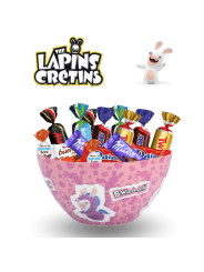 Le bol est accompagné de 30 délicieux chocolats, soigneusement sélectionnés pour tous les goûts : Kinder Bueno, Schokobons, Milka, Daim, Twix, Snickers, Bounty et Mars. Que ce soit pour un goûter, un anniversaire, Noël ou un cadeau surprise, ce set combine plaisir visuel et gourmandise, idéal pour les enfants, les adolescents ou les fans des Lapins Crétins.