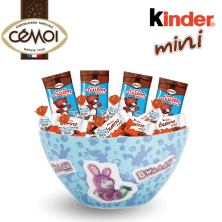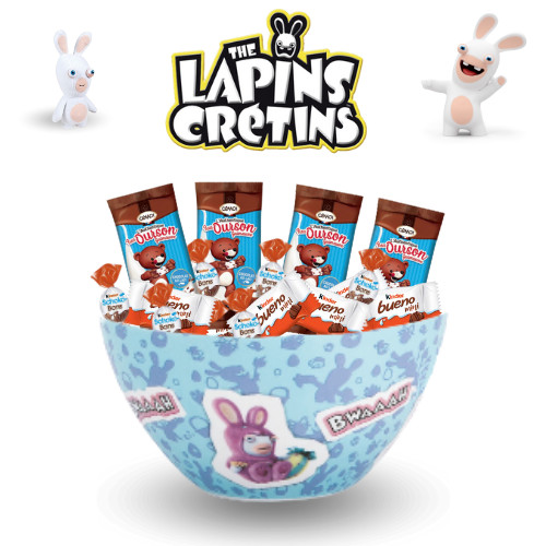 Le bol est accompagné de 20 délicieux chocolats, soigneusement sélectionnés pour tous les goûts : Kinder Bueno, Schokobons et oursons guimauve. Que ce soit pour un goûter, un anniversaire, Noël ou un cadeau surprise, ce set combine plaisir visuel et gourmandise, idéal pour les enfants, les adolescents ou les fans des Lapins Crétins.