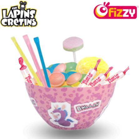 Le bol est accompagné d’un assortiment de bonbons au dextrose : colliers, pailles acidulées, boules coco, sucettes, soucoupes et rolls. Une sélection gourmande et variée, parfaite pour les moments de partage ou les petites douceurs au quotidien.Que ce soit pour un goûter, un anniversaire, Noël ou un cadeau surprise, ce set combine plaisir visuel et gourmandise, idéal pour les enfants, les adolescents ou les fans des Lapins Crétins.