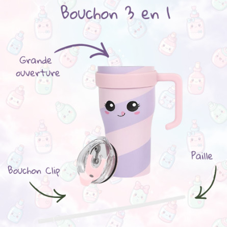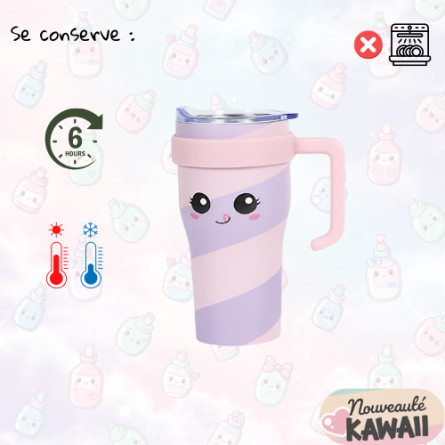 Hydrate-toi avec style ! Mug KAWAÏ en inox ultra-résistant, garde tes boissons chaudes ou froides. Bouchon 3-en-1, design coloré, passe en voiture. Fun, pratique et indispensable !