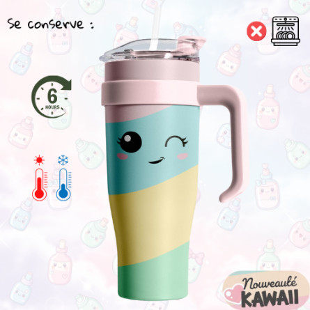Hydrate-toi avec style ! Mug KAWAÏ en inox ultra-résistant, garde tes boissons chaudes ou froides. Bouchon 3-en-1, design coloré, passe en voiture. Fun, pratique et indispensable !