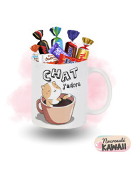 Mug "Chat j'adore" 32cl KAWAÏ + 20 Chocolats