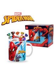 Ajoutez une touche de super-héros à vos pauses café avec notre mug Spider-Man garni de 15 chocolats : Kinder Schokobons, Mini Bueno, Milka, Daim, Twix, Snickers..