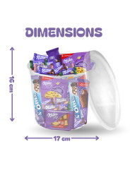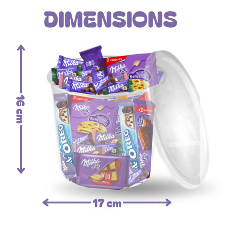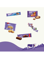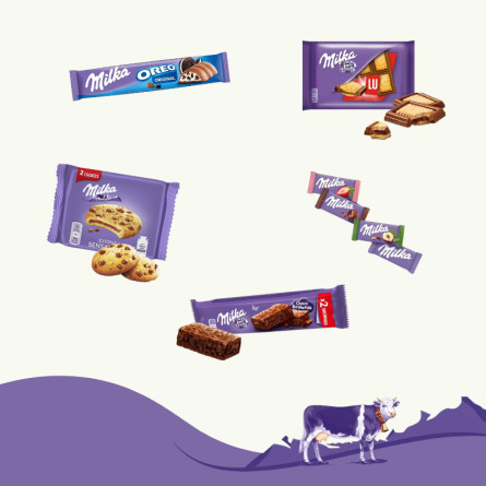 12 biscuits emballés individuellement : Milka Oreo – le classique croustillant au chocolat et à la crème Oreo. Milka Lu – le biscuit tendre et chocolaté signature Milka. Milka cookie – chocolat fondant et morceaux de cookie croquants. Milka brownie – moelleux et chocolaté, le plaisir ultime
