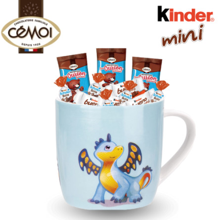 Ce coffret gourmand est accompagné de chocolats Kinder : Mini Bueno, au cœur fondant et enrobage croustillant, de Schokobons Kinder, chocolat au lait fourré au lait avec éclats de noisettes, ainsi que des oursons guimauve 11,5g moelleux de la marque Cémoi, délicatement enrobé de chocolat. Une sélection parfaite pour un moment sucré et réconfortant.