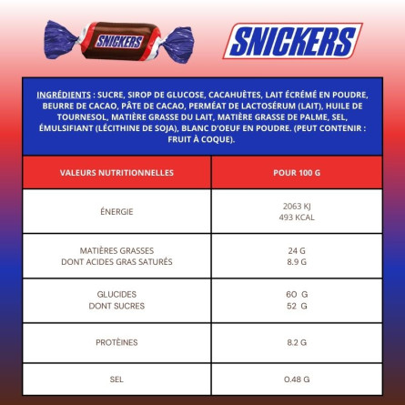 Ce sachet de 60 minis snickers avec caramel, cacahuètes et chocolat au lait est idéal pour les goûters ou pour emmener au bureau.