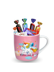 Plongez dans un univers féerique avec ce mug licorne, idéal pour petits et grands. Accompagné de chocolats Kinder Mini Bueno, Schokobons, Milka, Daim, Mini Miniatures c’est le cadeau parfait pour une pause gourmande et réconfortante.