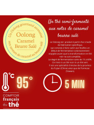Ce thé semi-fermenté offre un goût subtil et délicatement parfumé aux notes de caramel beurre salé. Nous vous conseillons de verser 2 g pour une tasse de 25-30 cl puis de laisser infuser pendant 5 minutes dans une eau à 95°C.